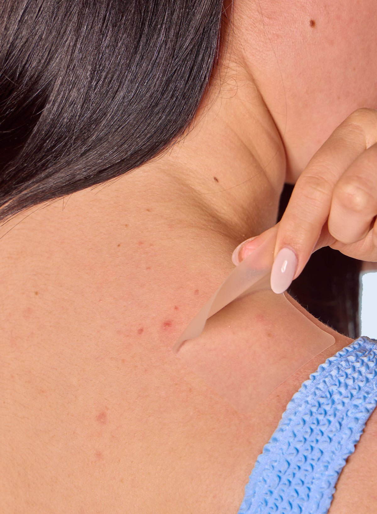 Back breakouts? Fight back with our body patch. Oversized, medical-grade hydrocolloid patches absorb gunk, prevent picking, and create a healing barrier for breakout clusters, fast. Cica-infused to soothe signs of inflammation and redness. Wears comfortably overnight for visibly clear, calm skin in just 6 hours.